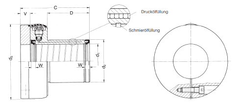 Konstrukční řada B je základní prvek bezpečnostních spojek HYGUARD®. V důsledku malých rozměrů ji lze kombinovat s různými komponenty pohonu, aniž by to ovlivnilo jejich kapacitu kroutícího momentu. Přitom je bezpečnostní spojka vhodná jako stejně dobře pro upnutí pevných dílů jako otočná tělesa. Po uvolnění účinkuje spojka jako kluzné ložisko. Obvodová rychlost na kluzné ploše nesmí přitom překročit 1,5 m/s. Z tohoto důvodu se doporučuje kontrukční řada B přednostně pro nízkootáčkové pohony. (Provedení pro vyšší rychlosti na přání)