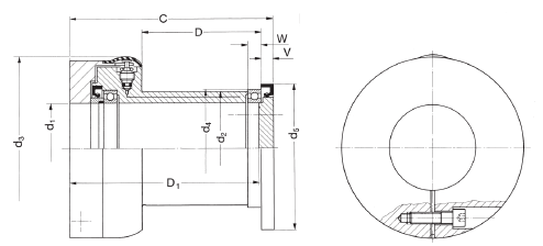 Konstrukční řada BW bezpečnostních spojek HYGUARD® je v podstatě obdobná jako základní řada B, je však vždy navíc vybavena válečkovými ložisky. Proto je řada BW vhodná také pro pohony s vyššími otáčkami. Oproti verzi s čistě kluznými ložisky přichází tento model převážně v úvahu pro použití tam, kde se po uvolnění očekávají vyšší obvodové rychlosti uložení než 1,5 m/s. Přitom jsou prostorové nároky jen o málo větší než u provedení B. (Provedení pro vyšší rychlosti na přání)