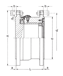 Základní konstrukční řada s valivými ložisky, v provedení s mezikusem, přednostně pro zubové naklápěcí spojky Bogenzahn – Kupplungen® typu SBL nebo SBLk.