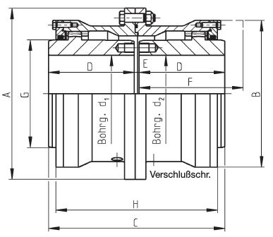 (větší hodnoty jsou možné, vyžadují však zvláštní opatření) - hodnoty pro kompletní spojku pro vrtání d1;d2max.