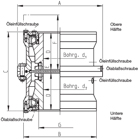 • Spojky řady VSB jsou určeny k montáži ve vertikální poloze. Jsou vybaveny dvěma oddělenými mazacími komorami a jsou vhodné volitelně pro provoz s olejovou anebo tukovou náplní.