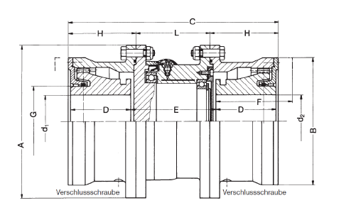 Bezpečnostní spojka HYGUARD® BWL v přírubovém provedení smontována společně se zubovou naklápěcí spojkou Bogenzahn-Kupplung® SBL. Rozměry a vlastnosti Bogenzahn-Kupplungen® zůstávají plně zachovány. Způsob činnosti dvojitého kardanu. Maximální úhlový posun pro každou polovinu spojky +/- 1,5°. Zubová naklápěcí spojky Bogenzahn-Kupplung® SBL je vhodná jak pro mazání olejem tak i tukem. U již existujících spojek této řady je dodatečná montáž s bezpečnostní spojkou BWL snadná.
